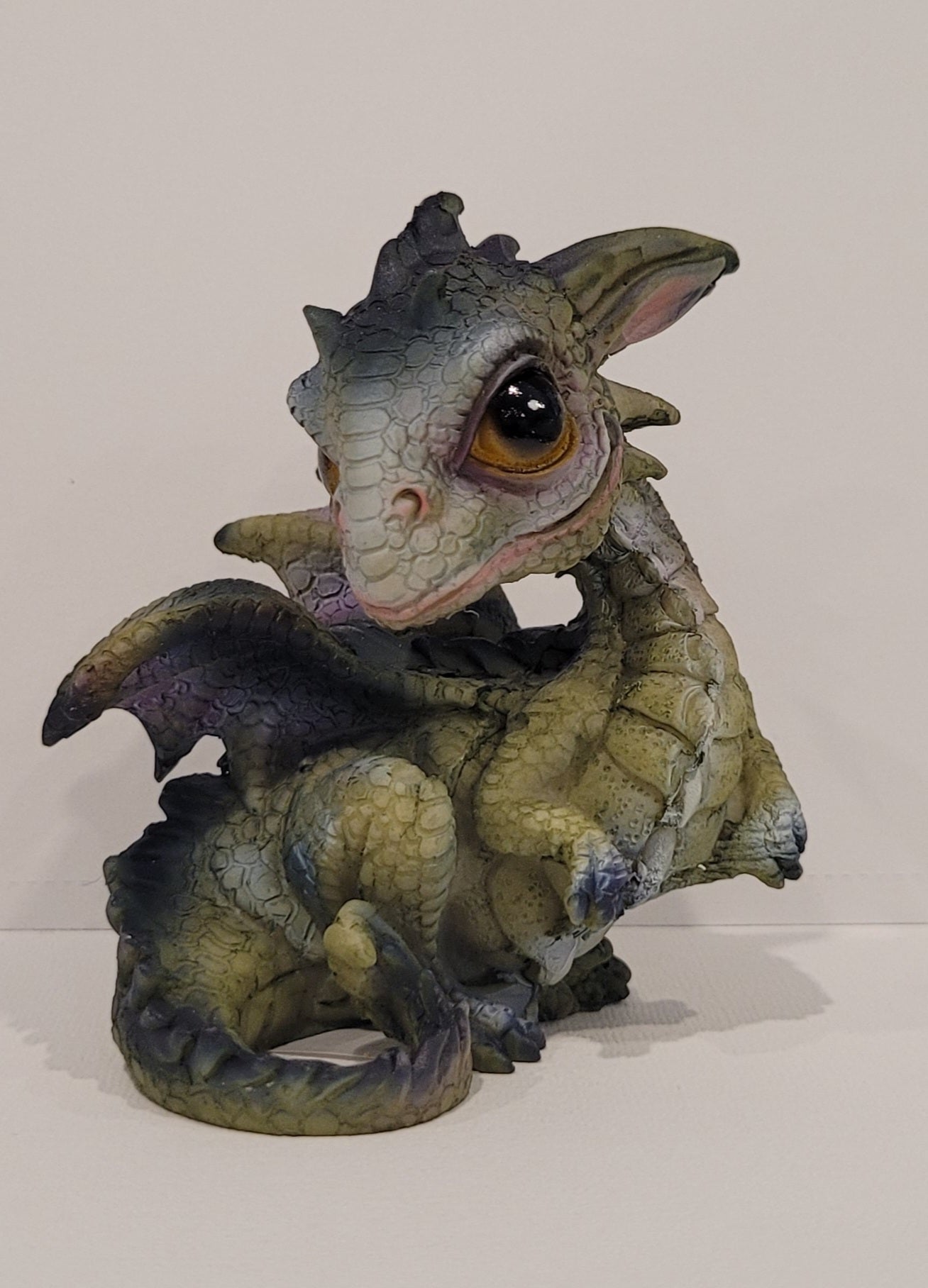 RESIN BABY DRAGON FIGURINE-WATCHING 5.25″H